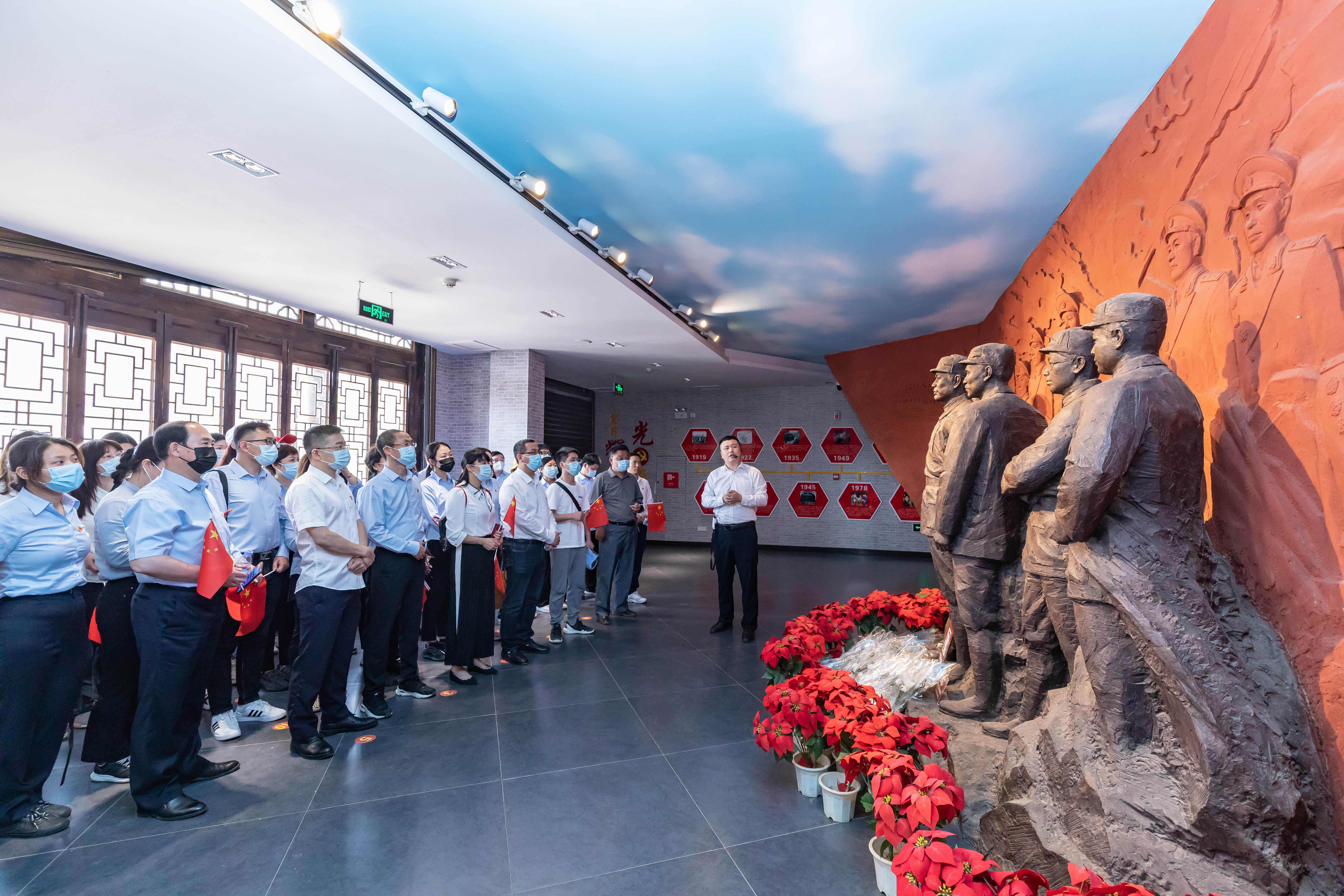 为庆祝中国共产党成立100周年,缅怀革命英烈,凝聚奋进力量, 5月8日,海博体育机关和各分子公司党支部五十余名党员走进“武汉抗战第一村”——黄陂区姚家山,参观新四军新五师史迹陈列馆,开展“奋斗百年路启航新征程”主题党日活动,于革命遗迹中重温峥嵘岁月,于诗意山水间体悟远大理想,于古朴民风中感悟初心使命,于红歌传唱中传承革命精神。