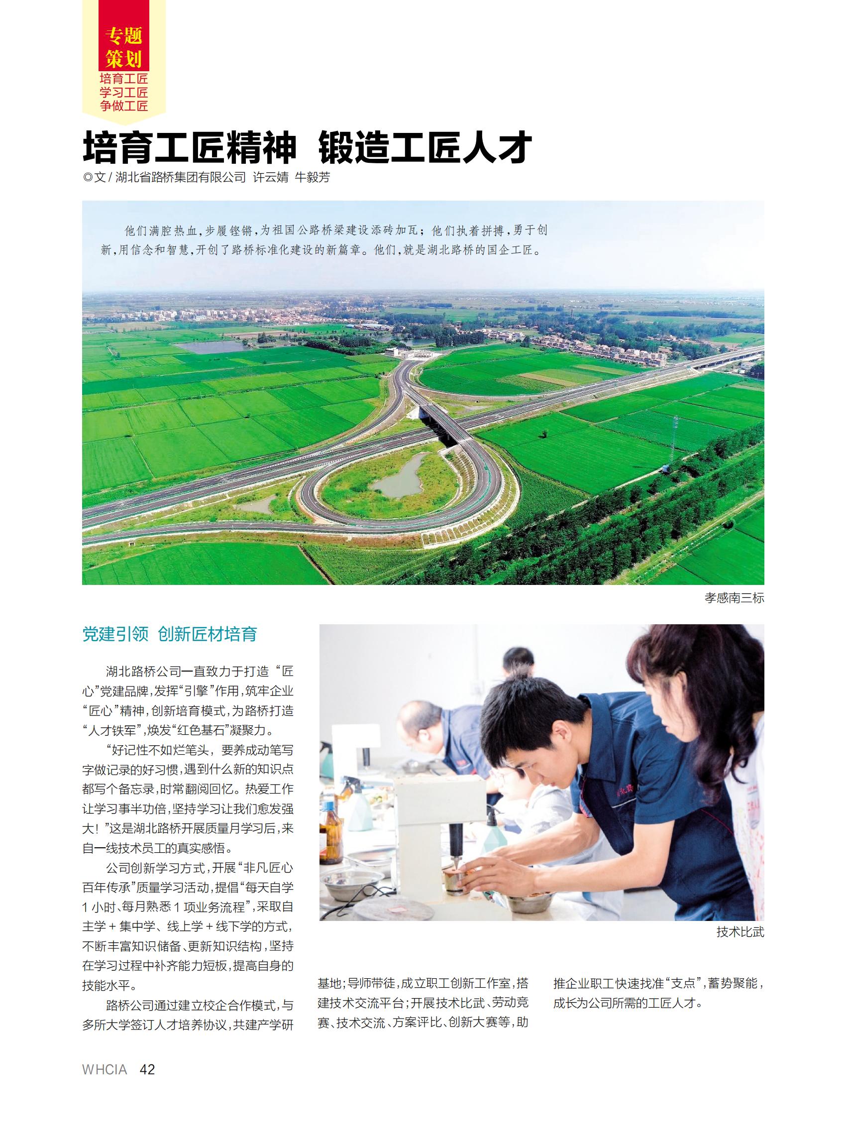 近日,海博体育撰写的《培育工匠精神 锻造工匠人才》一文,登上武汉建筑业协会主办的《武汉建筑业》杂志“工匠精神”专题策划版,以下为全文: