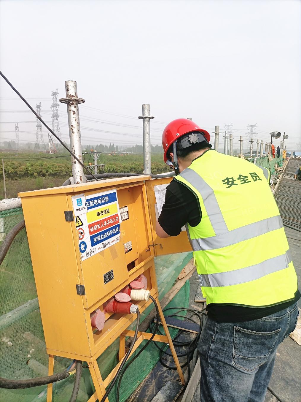 图:孙锦逸在现场检查安全用电情况