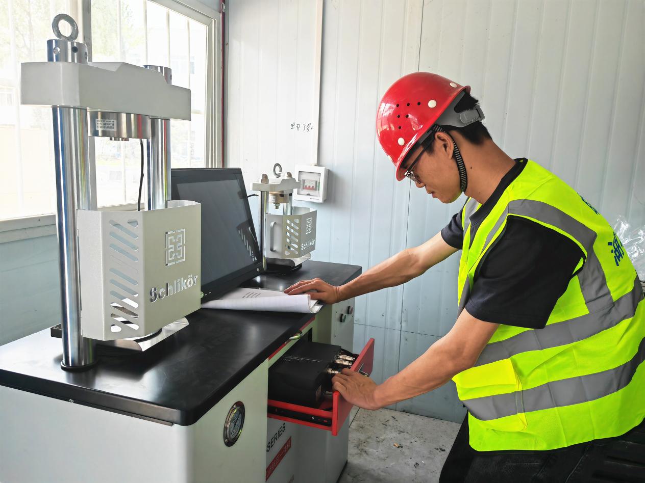 图:李袁杰在检查标志基础外观尺寸