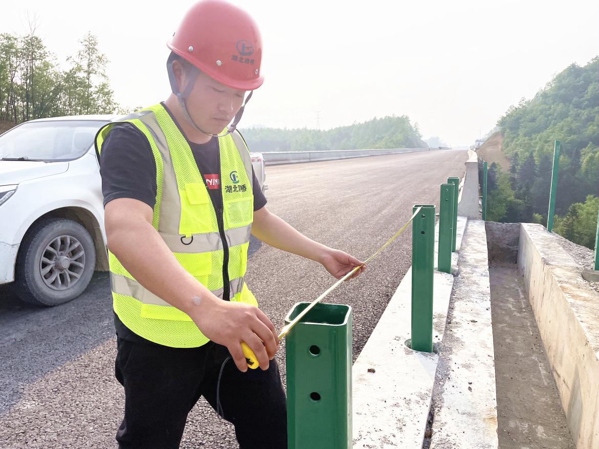 图:李袁杰在检查护栏立柱中距