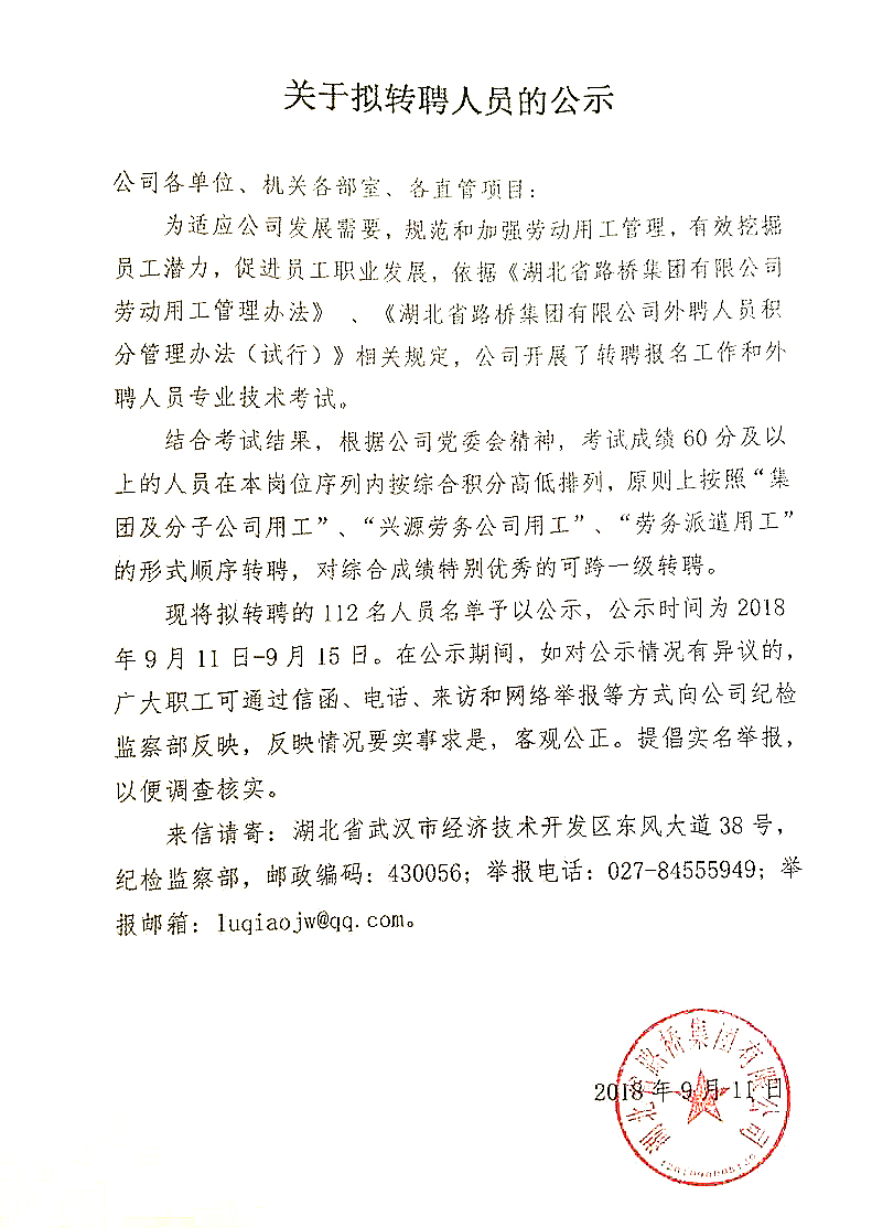 海博体育2018年关于拟转聘人员的公示