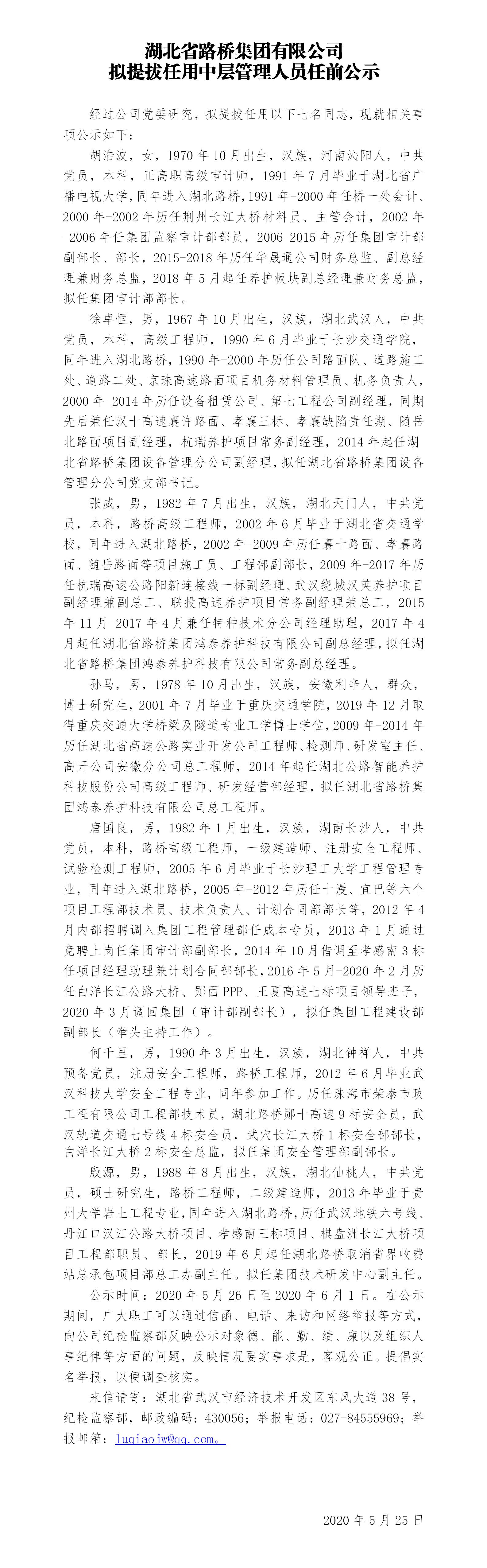 海博体育拟提拔任用中层管理人员任前公示