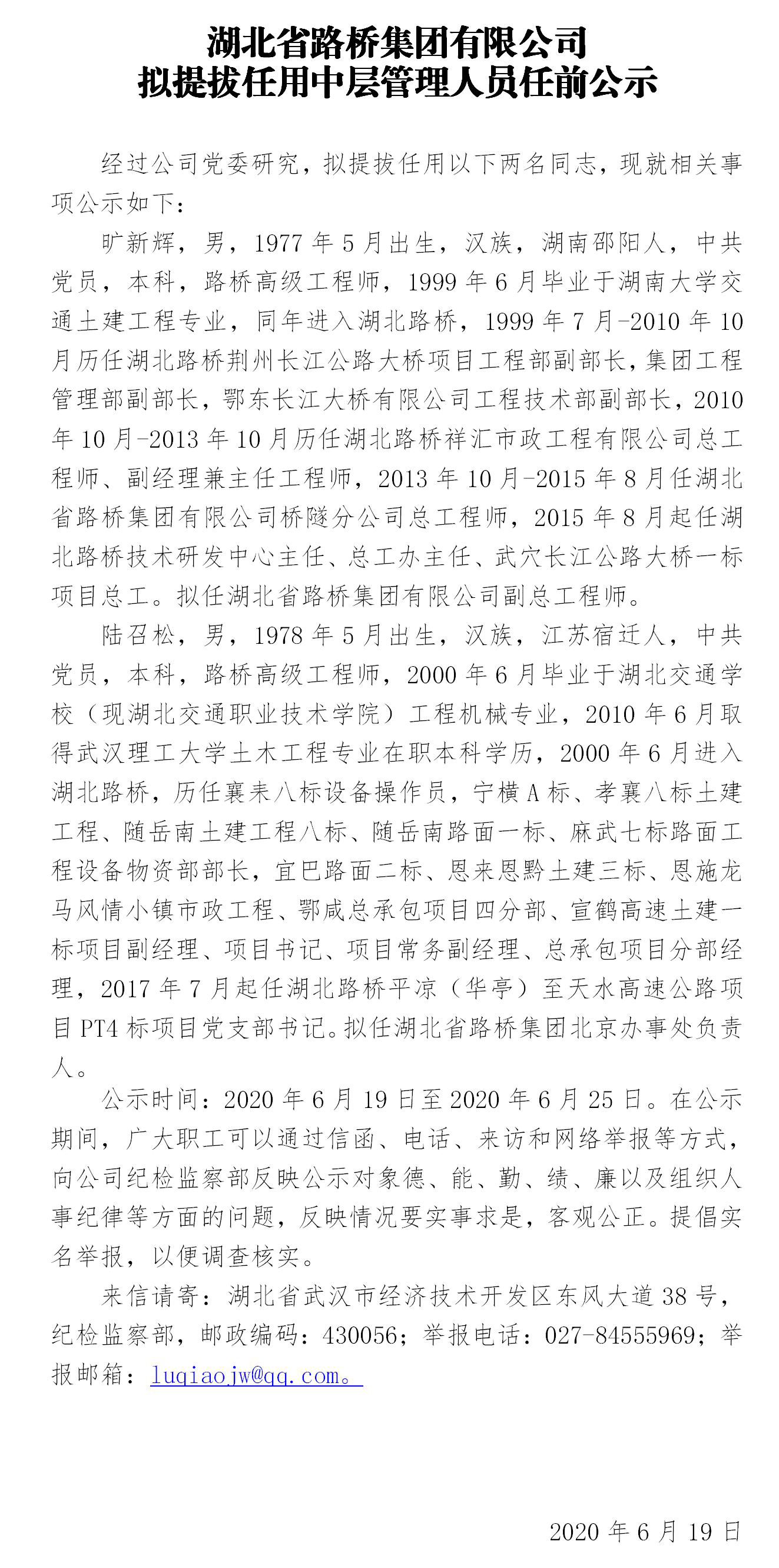 海博体育拟提拔任用中层管理人员任前公示