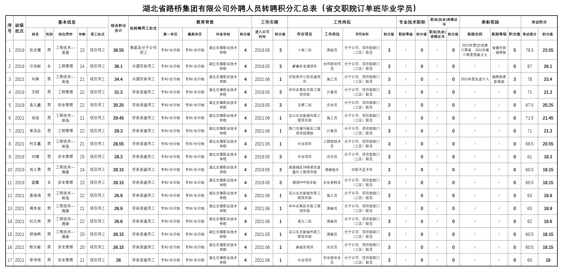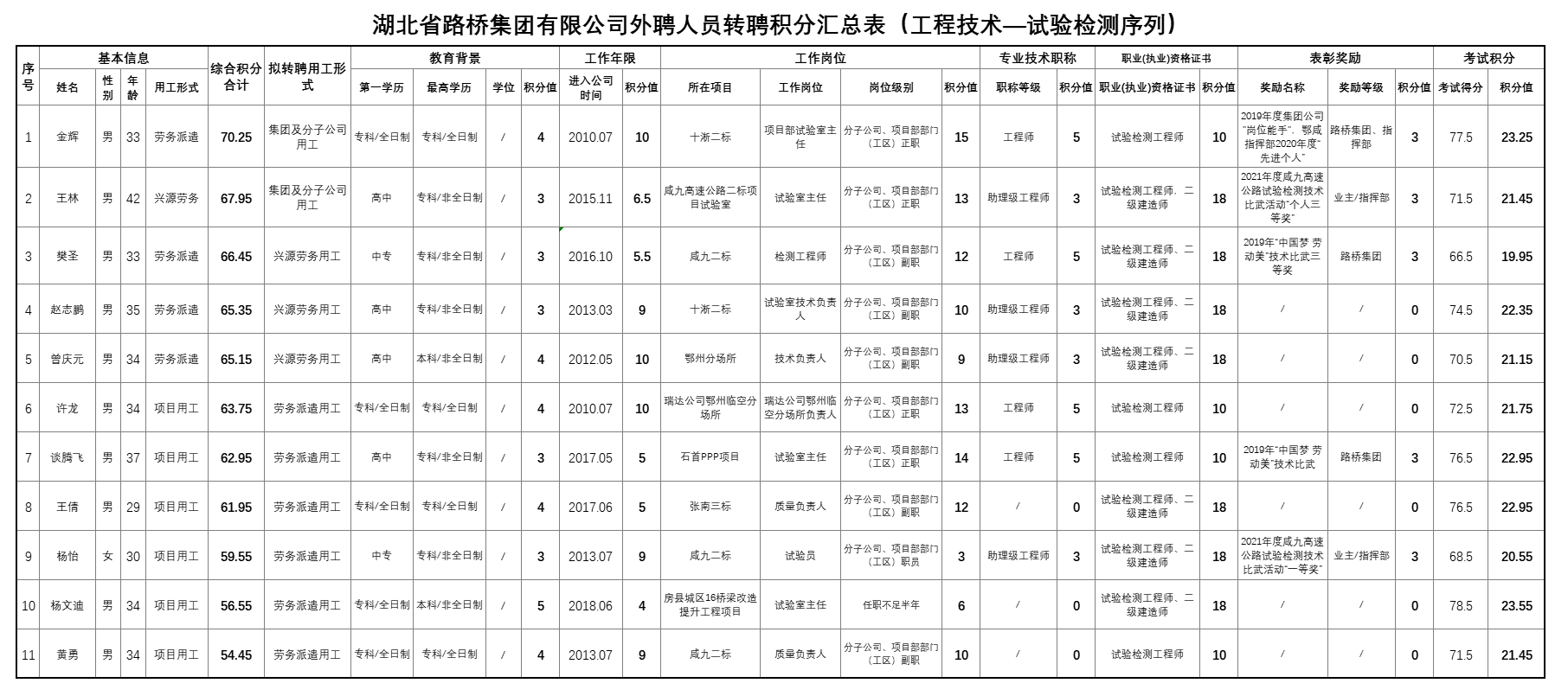 关于2022年湖北省路桥集团外聘人员专业技术考试成绩公布的通知