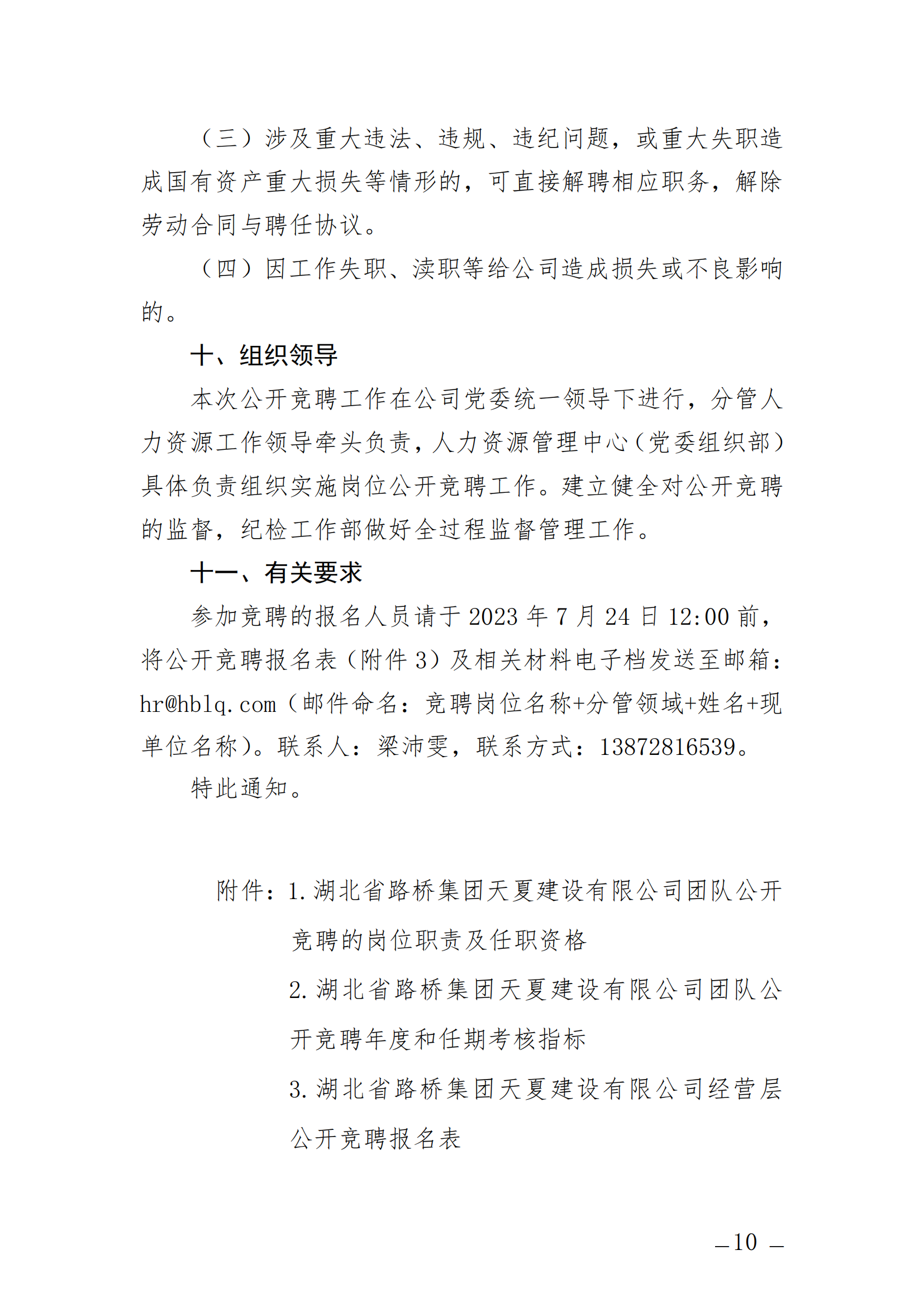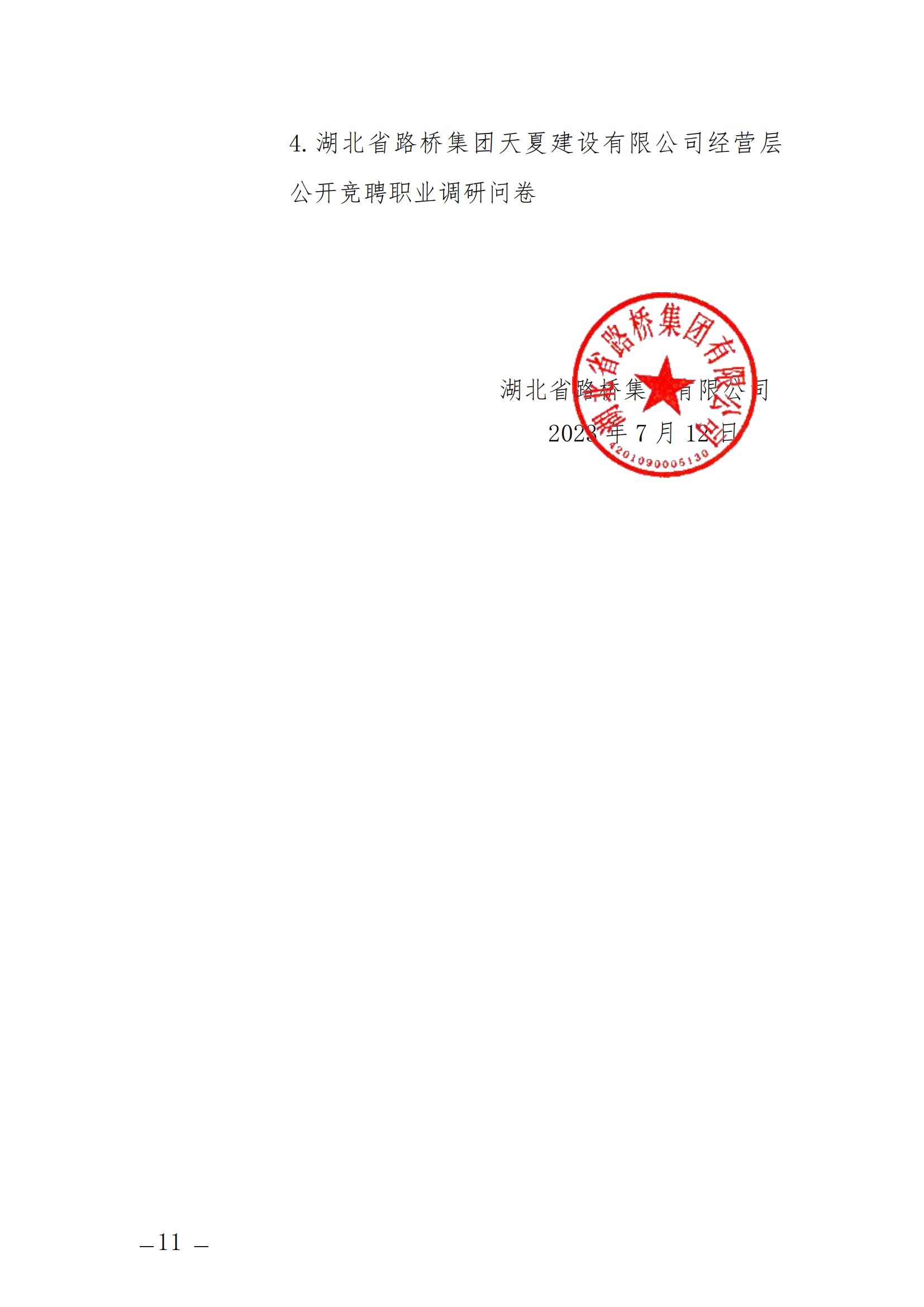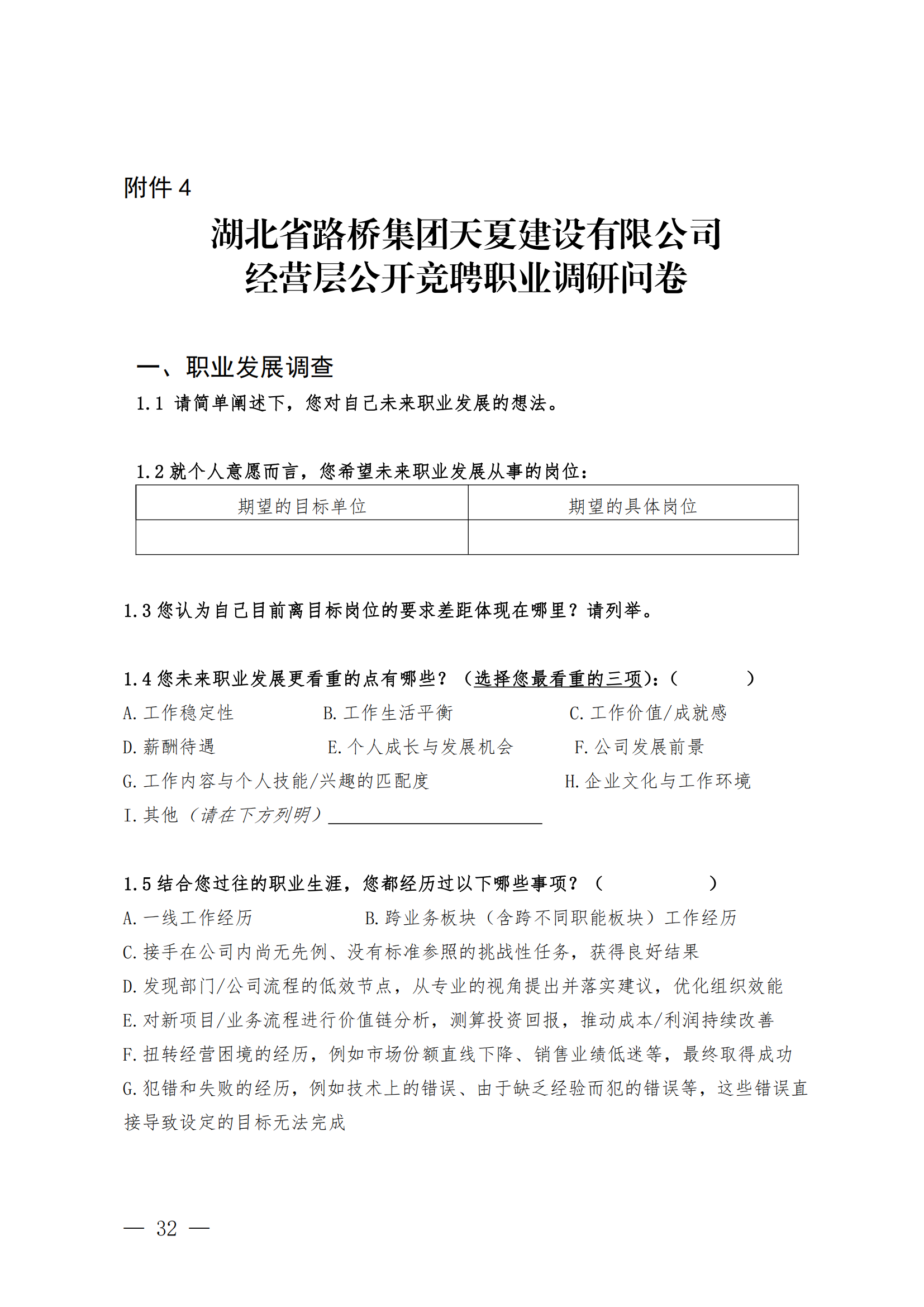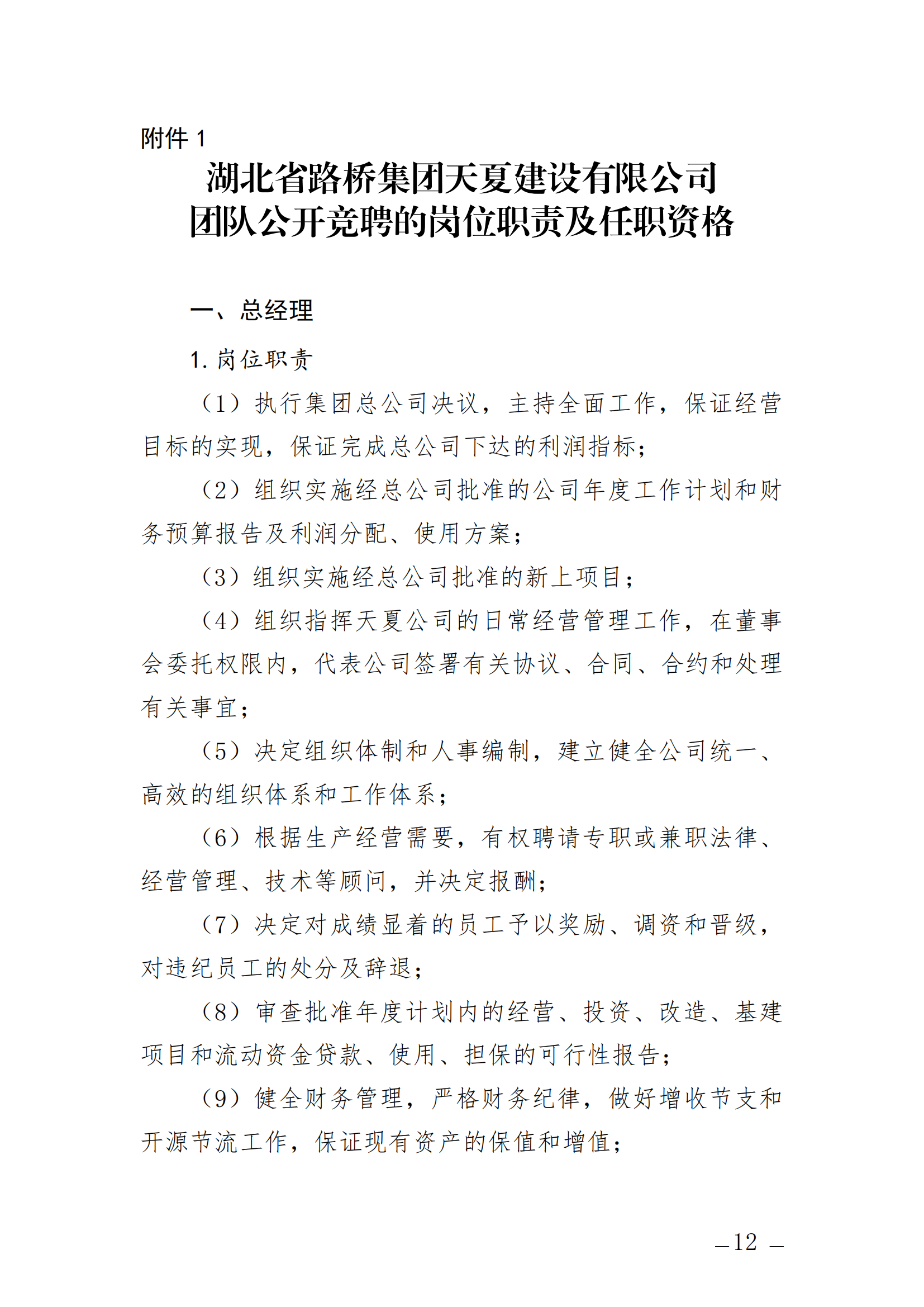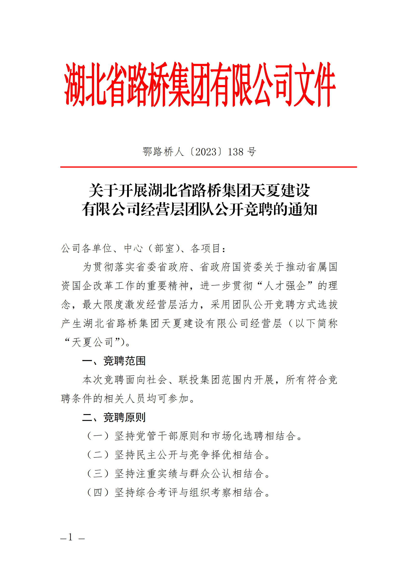 关于开展湖北省路桥集团天夏建设有限公司经营层团队公开竞聘的通知