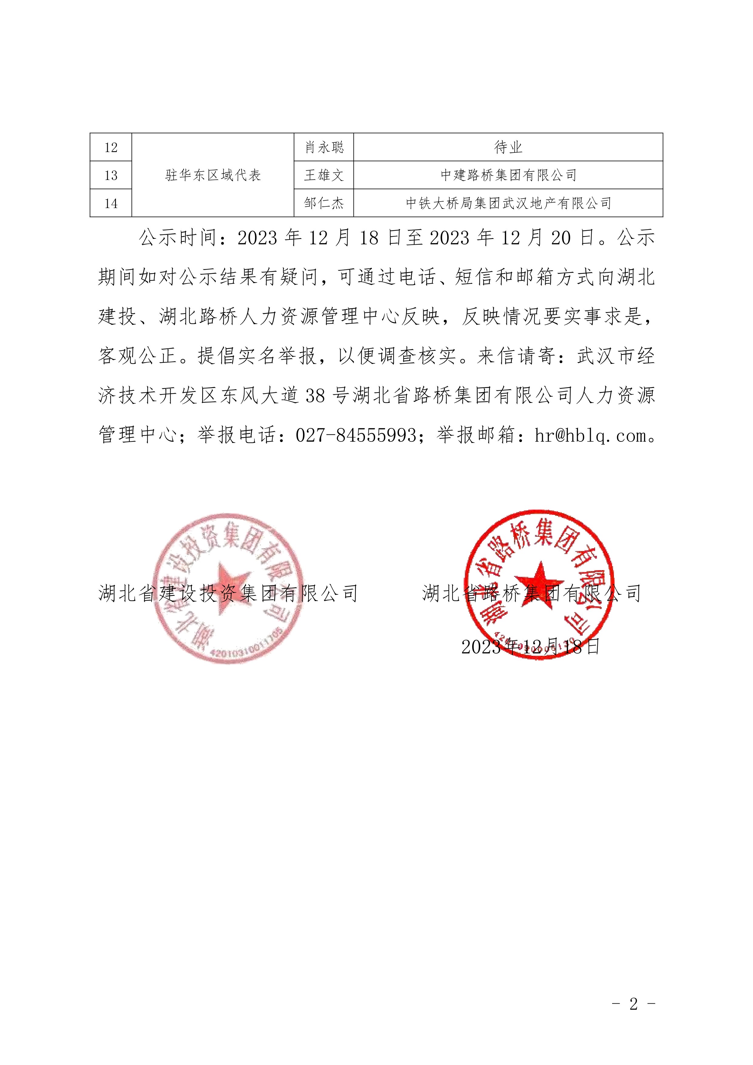 关于驻湖北联投区域公司总部管理岗位公开竞聘考察对象的公告