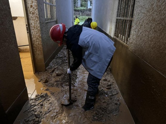 面对暴雨险情,项目部采取“快”“狠”“准”措施,迅速调配人员,在确保施工安全前提下有序开展各项抗洪防汛工作,固定陡坡伪装网,用机械清理道路碎石淤泥,确保施工便道及当地居民出行道路安全畅通。同时,安排专人24小时巡查,对有安全隐患的区域进行标记加固,确保山坡、便道、河道、施工现场的安全稳定,防止二次事故的发生。关键时刻,项目部第一时间带队前往当地居民家中,全力清理碎石淤泥,并与当地政府积极沟通联系,安顿受灾居民并提供生活基础保障,获得当地居民一致好评。