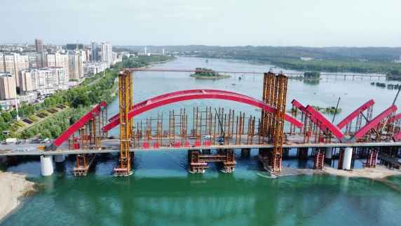 依托丹江口市水都二桥工程,研发了一种拱肋原位支架快速安拆技术、拱肋吊装高空精确调整定位技术、多因素影响钢箱拱肋温差变形预测技术,提出了中跨拱肋低位拼装同步提升合龙技术,研制了液压动力系统提升装置,采用了视觉位移监测系统,提高了拱肋原位支架安拆效率,全方位确保拱肋提升质量与安全。