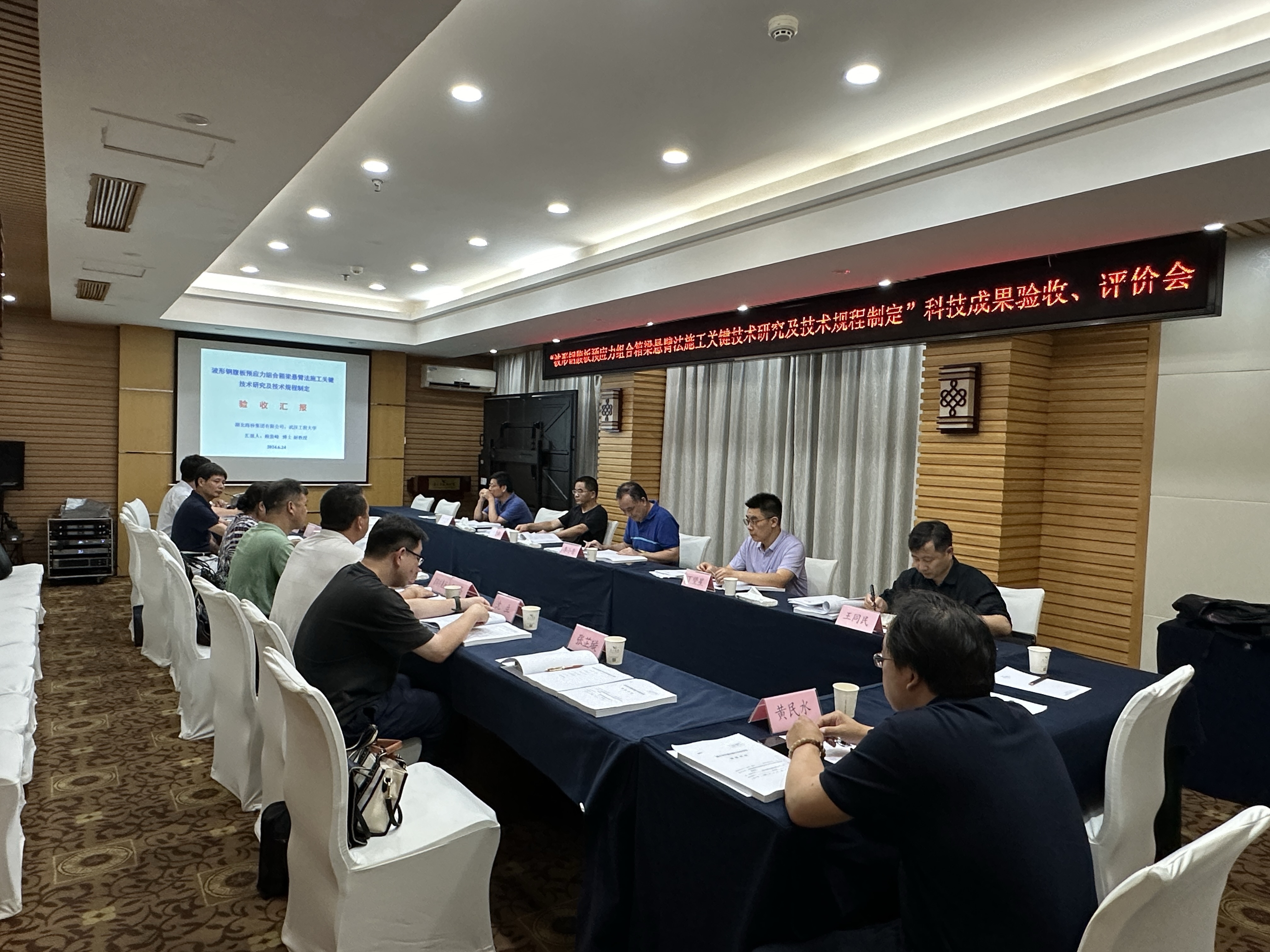 近日,湖北省交通运输厅、湖北省公路学会在武汉组织召开了由海博体育主持研发的2项省交通厅科技项目的验收及成果评价会,经与会专家质询和讨论,2项省交通厅科技项目《波形钢腹板预应力组合箱梁悬臂法施工关键技术研究及技术规程制定》《公路桥梁伸缩装置技术状况评定及维护更换标准研究》均顺利通过结题验收,1项研究成果获评“国际先进”水平,1项研究成果获评“国内领先”水平。