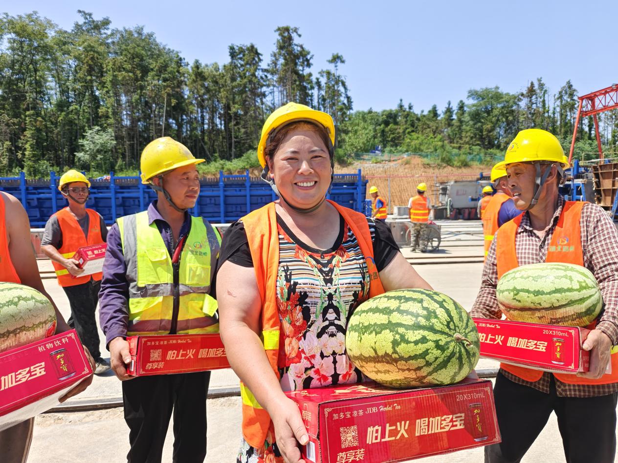 汪继明深入赤壁东项目2号梁场,实地察看项目施工进展、安全质量管控等情况,随后在项目现场进行慰问,将防暑降温物品送到一线员工手中,将集团的关心关爱送到职工群众心坎上,为酷暑“降”温,让爱心“升”温。同时他贴心叮嘱大家要劳逸结合,注意防暑降温,确保安全生产。湖北交投鄂南公司党委书记、董事长倪四清,党委委员、副总经理汤立志等参与慰问活动。