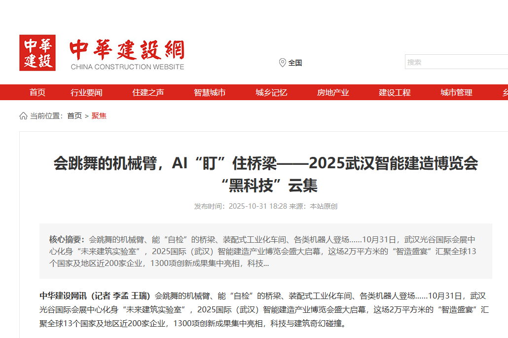 近日,2025国际(武汉)智能建造产业博览会在武汉举办,联投海博体育作为参展单位参加本次博览会,中华建设网对联投海博体育“黑科技”进行报道,以下是相关报道: