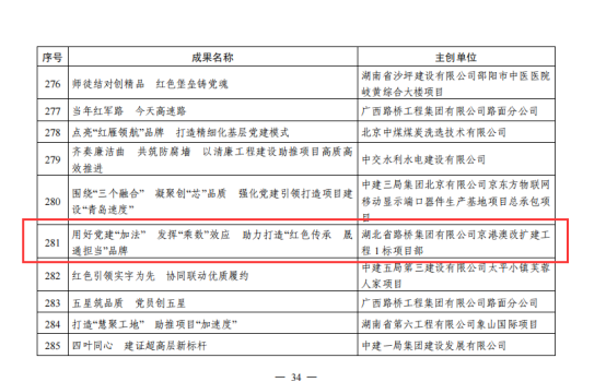 5月16日,中国施工企业管理协会公布了2024年“工程建设企业党建工作优秀成果”的名单,海博体育京港澳改扩建工程1标项目成功获评“工程建设企业党建工作优秀二等成果”。