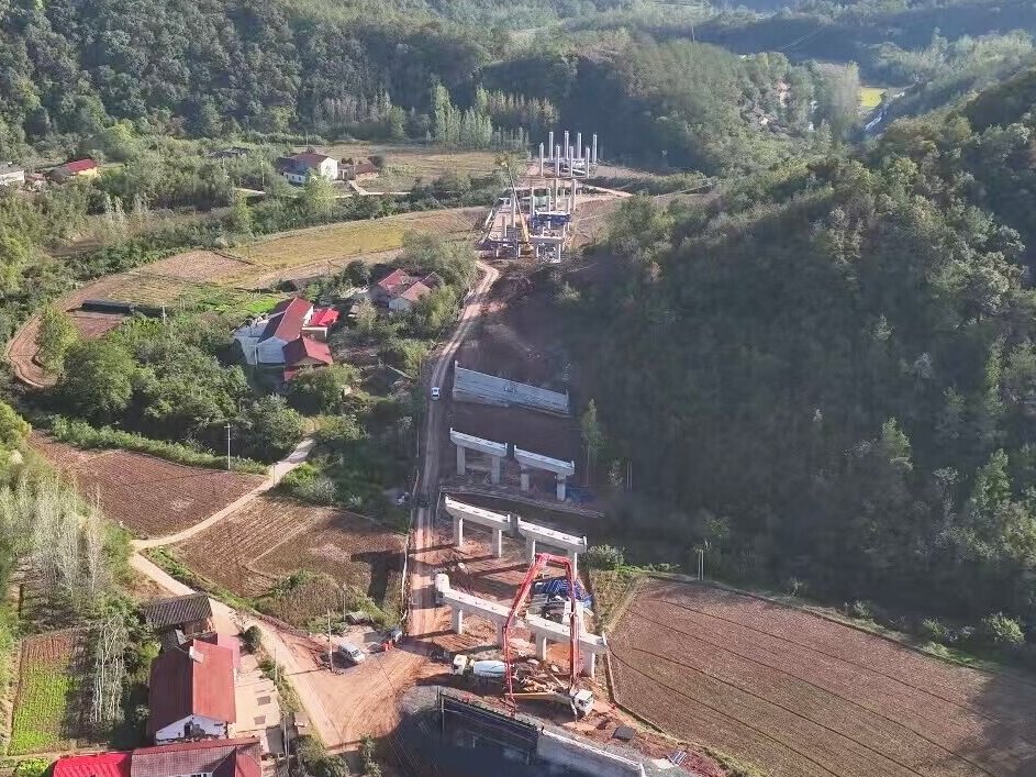 考箭坝大桥位于宜昌市远安县茅坪场镇八角村,左幅长127.5m,右幅长127m,设计桩基26根,墩柱12根,盖梁桥台10个。在考箭坝大桥下构施工过程中,襄宜三标项目强化计划管理,紧扣节点目标,优化、细化施工方案,统筹安排“人、机、料”等各项资源保障,严格把关原材料质量、施工工艺等环节,对技术方案、工艺流程、安全管理等方面进行详细交底。此外,项目还充分发挥党员攻坚岗、青年突击岗、质量通病突击岗的作用,全程监督、层层把关各个施工工序,确保工序管理规范化、施工作业标准化,为高质高效完成桥梁下部结构施工奠定了坚实基础。
