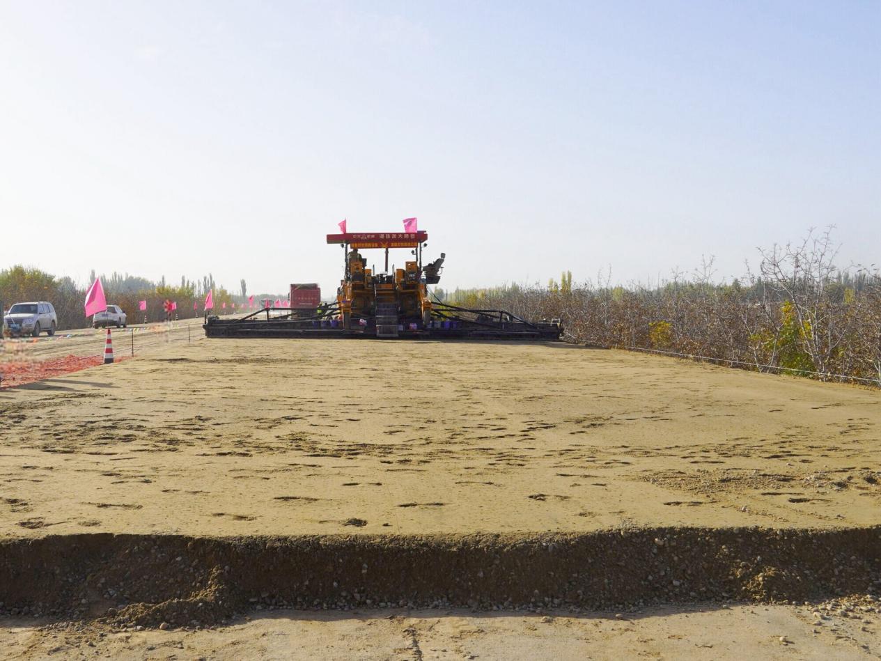 11月2日,海博体育库沙二标项目K51+124-K51+480段顺利完成路面底基层试验段摊铺工作,标志着库沙二标项目正式开启路面工程新篇章,为后续路面底基层施工打下了坚实基础。