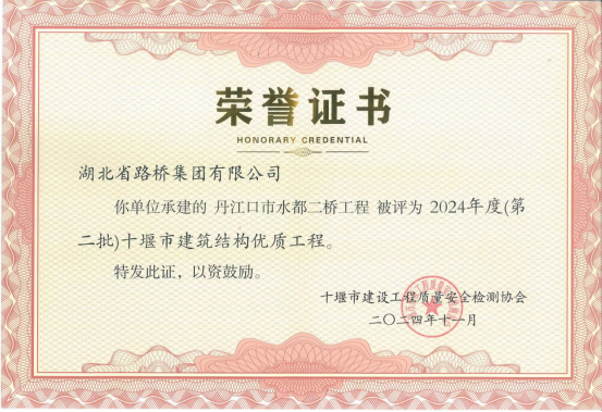 近日,十堰市建设质量安全检测协会公布2024年度(第二批)“十堰市建筑结构优质工程”和“建筑工程安全文明施工现场”获奖名单,海博体育承建的丹江口市水都二桥工程荣登榜单,喜获“质安”双奖。